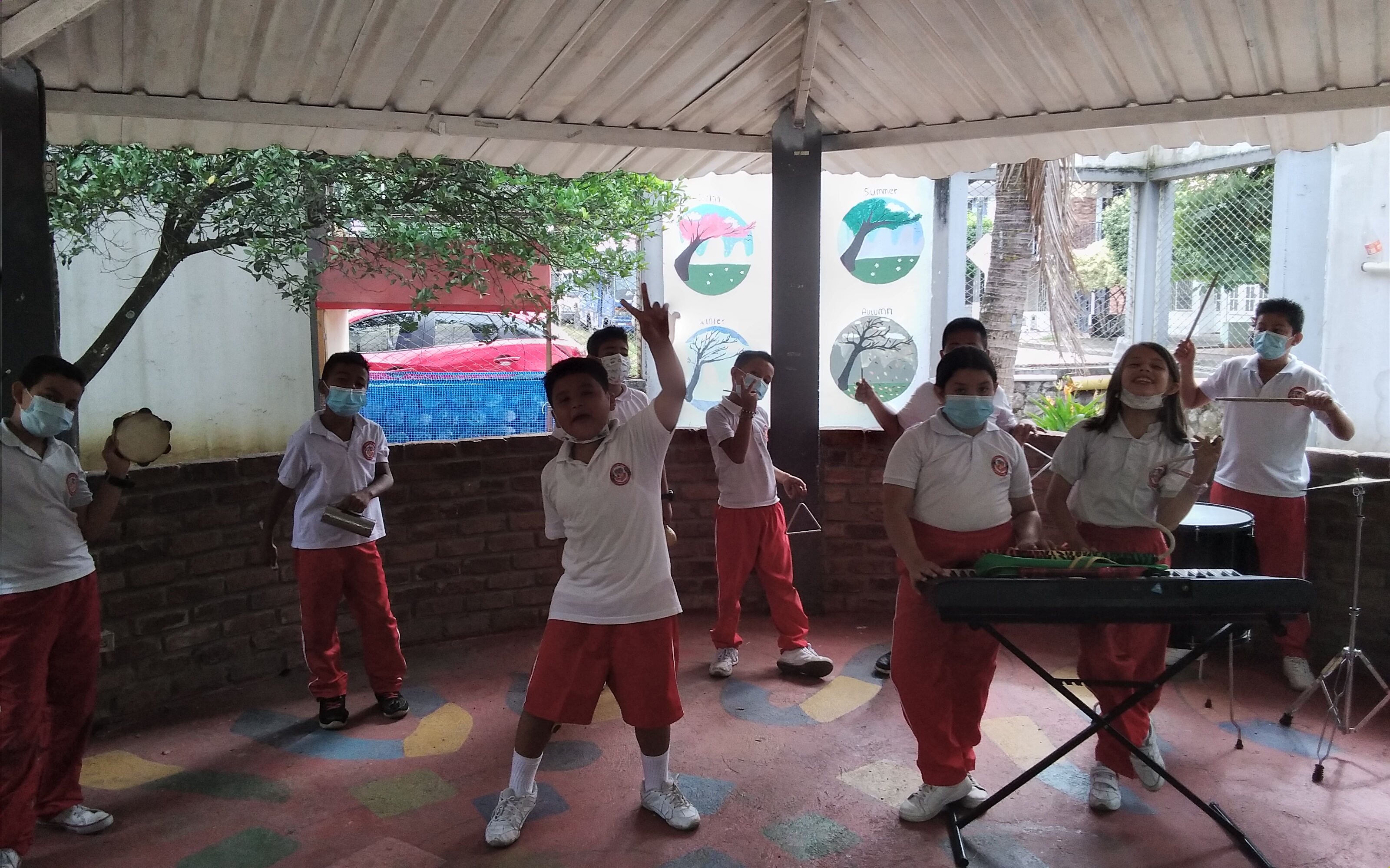 Allí se comenzó el año de manera virtual usando videollamadas y plataformas para la enseñanza de los contenidos, luego después de mitad de año, se retomo la presencialidad pudiendo hacer montajes musicales con cada grupo. Aquí algunas de las experiencias musicales que compartimos en Yopal.